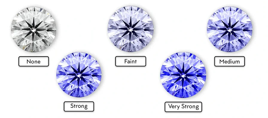 La fluorescence est un phénomène peu connu, mais qui peut influencer l’apparence et la valeur d’un diamant. Sous une lumière ultraviolette, certains diamants émettent une lueur bleutée plus ou moins intense, ce qui peut parfois altérer leur brillance et donner un effet laiteux à la pierre.