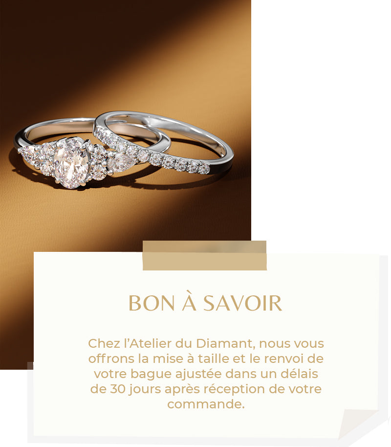 La taille de la bague est un élément clé pour éviter toute mauvaise surprise lors de la demande.