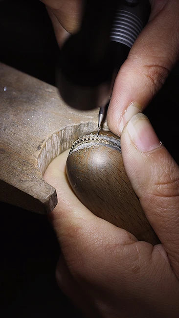 Avant dernière étape du processus de fabrication : le sertissage des pierres