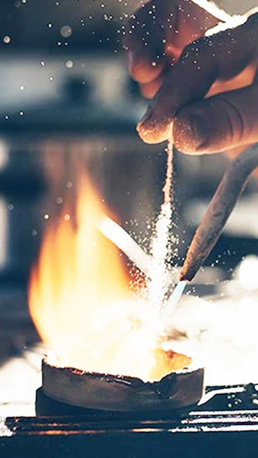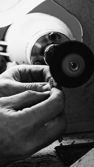 Lorsque le bijou est fondu de la cire vers l’or, la pièce est brute de fonte. Cela signifie qu’elle est mate et ne possède pas un aspect convenable. Le bijoutier doit donc réaliser de multiples opérations pour ôter la couche mate de l’or et révéler sa belle couleur brillante. Cela est bien sûr réalisé au sein de notre atelier par nos artisans experts.