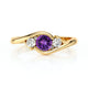 Une bague trilogie en or 18 carats surprenante et unique ! Cette bague est une pure merveille, dotée de courbes ondulées et sinueuses. En plus d’un design incroyable, ce modèle possède comme énorme avantage un sertissage discret, presque invisible. De plus, ce modèle possède une véritable prestance sur le doigt et brille de mille feux, grâce à un petit secret : deux petits diamants se cachent sur ce modèle et viennent s’ajouter aux 3 pierres principales dont une améthyste naturelle, ce qui donne un résultat scintillant.