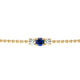 Une trilogie dans tout ce qu’il y a de plus pur et de plus beau ! Ce superbe bracelet est une pièce précieuse, brillante et raffinée. Montées sur or 18 carats, son magnifique saphir central accompagné des deux diamants naturels constituent un alignement parfait.