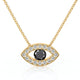 Mystique et éclatant : ce collier en forme d’œil dévoile un diamant noir central lumineux, délicatement entouré d’un halo de diamants taille brillant. Symbole de protection et de clairvoyance, son motif marquise souligne le décolleté avec grâce tout en captant la lumière sous tous les angles. À la fois talisman précieux et bijou d’exception, il allie intensité, élégance et modernité intemporelle.