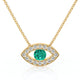 Mystique et éclatant : ce collier en forme d’œil dévoile une émeraude centrale lumineuse, délicatement entourée d’un halo de diamants taille brillant. Symbole de protection et de clairvoyance, son motif marquise souligne le décolleté avec grâce tout en captant la lumière sous tous les angles. À la fois talisman précieux et bijou d’exception, il allie intensité, élégance et modernité intemporelle.