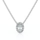 Majestueux et lumineux : en or 18 carats, une pierre ovale sertie 4 griffes est soulignée d’un halo de diamants — un « îlot » pétillant qui éclaire le décolleté au quotidien comme lors des grands instants.