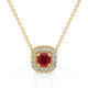 En or 18 carats, un rubis naturel rond serti 4 griffes est sublimé par un halo de diamants : une « pastille de brillance » pensée pour illuminer le décolleté au quotidien comme lors des grands moments.