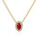 Majestueux et lumineux : en or 18 carats, un rubis naturel ovale serti 4 griffes est souligné d’un halo de diamants — un « îlot » pétillant qui éclaire le décolleté, du quotidien aux grands instants.