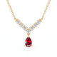 Élancé et majestueux : une ligne de diamants taille brillant dessine un V lumineux qui sublime le cou. En son centre, un rubis taille poire délicatement suspendu apporte mouvement et intensité, captant la lumière à chaque geste. À la fois gracieux et sophistiqué, ce collier incarne l’équilibre parfait entre modernité et raffinement intemporel — une pièce précieuse pensée pour illuminer les instants les plus précieux.