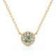 Discret et élégant : en or 18 carats, le saphir vert naturel de centre sertie 4 griffes est souligné d’un entourage de diamants. Une « pastille de brillance » pensée pour durer.
