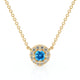 Discret et élégant : en or 18 carats, la topaze naturelle de centre sertie 4 griffes est soulignée d’un entourage de diamants. Une « pastille de brillance » pensée pour durer.