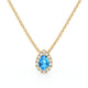 Majestueux et éclatant : en or 18 carats, la topaze naturelle centrale taille poire sertie 3 griffes est sublimée par un halo de diamants — un « îlot » de lumière pensé pour le quotidien comme pour les grands moments.