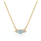 Collier en or 18 carats au design trilogie : une aigue-marine naturelle centrale soulignée de deux diamants pour un éclat équilibré — imaginé et fabriqué en France.