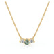 Collier en or 18 carats au design trilogie : un saphir vert naturel centrale soulignée de deux diamants pour un éclat équilibré — imaginé et fabriqué en France.