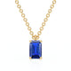 Majestueux et éclatant, ce pendentif en or 18 carats met en scène un saphir naturel taille émeraude serti 4 griffes : un « petit îlot » de lumière qui illumine le décolleté, du quotidien aux grands moments.