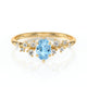 Léger, floral et aérien ! Ce superbe solitaire accompagné aigue-marine et diamant est tout à fait singulier de part sa structure et la disposition de ses diamants. Cette pièce en Or 18 Carats est une véritable merveille, raffinée et élégante avec son aigue-marine centrale en forme ovale.