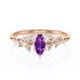 Léger, floral et aérien ! Ce superbe solitaire accompagné améthyste et diamant est tout à fait singulier de part sa structure et la disposition de ses diamants. Cette pièce en Or 18 Carats est une véritable merveille, raffinée et élégante avec son améthyste centrale en forme marquise.