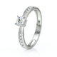 Le solitaire accompagné en or 18 carats avec un sertissage en 4 griffes est le classique par excellence ! Ce modèle est tout simplement une pépite diamantée, raffinée et élégante. La courbe de l’anneau s’affine pour mettre en valeur le superbe diamant de centre, le tout souligné par un lit de diamants.