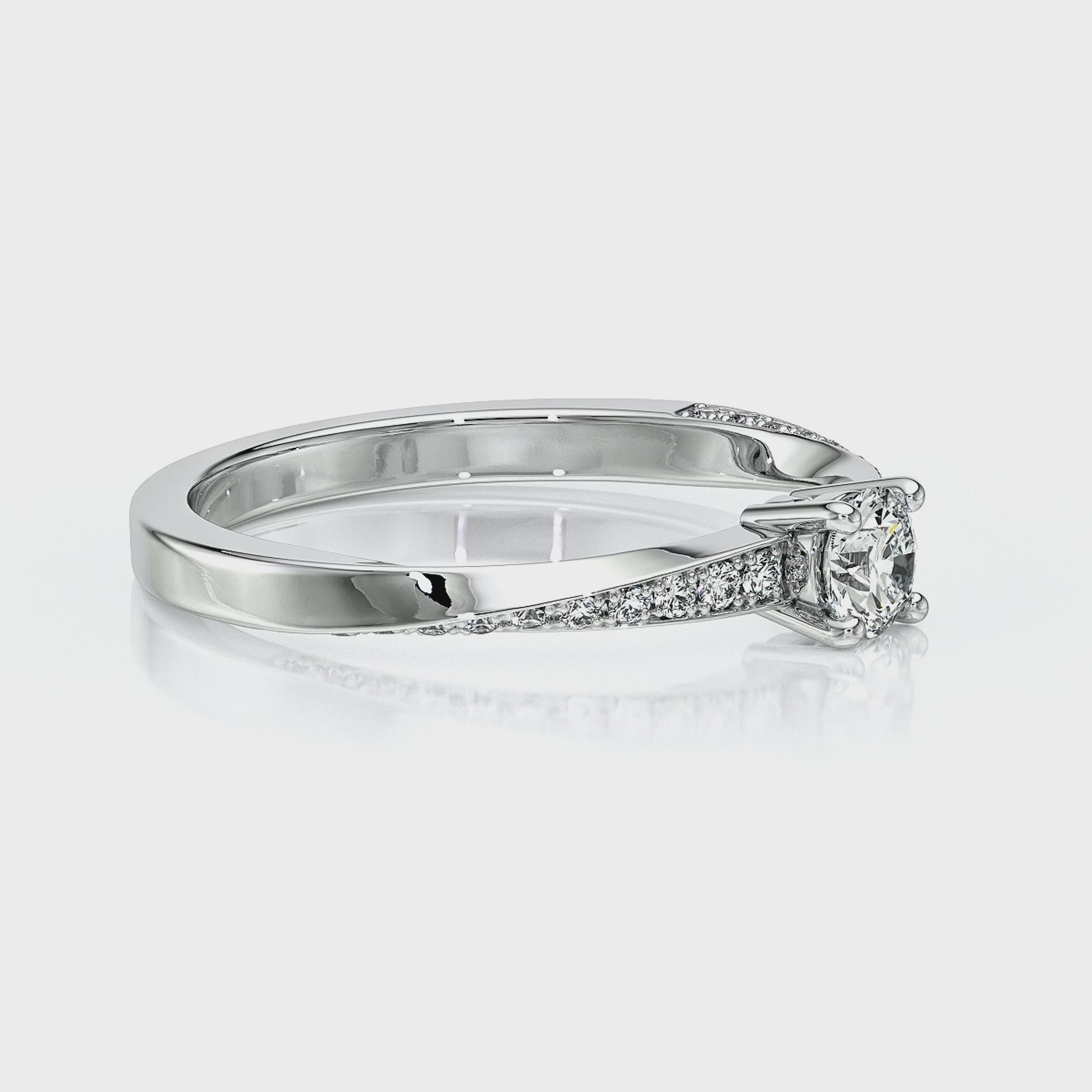 Une originalité sans limites pour ce superbe solitaire en or 18 carats accompagné de diamants. Le diamant central est mis en valeur de manière envoûtante par ce corps vrillé serti de diamants. Un mélange de technique et de raffinement à l’image de notre slogan : Atelier du diamant, la garantie du bon goût.