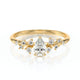 Léger, floral et aérien ! Ce superbe solitaire accompagné diamant est tout à fait singulier de part sa structure et la disposition de ses diamants. Cette pièce en Or 18 Carats est une véritable merveille, raffinée et élégante avec son diamant central en forme de poire.