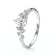 Léger, floral et aérien ! Ce superbe solitaire accompagné diamant est tout à fait singulier de part sa structure et la disposition de ses diamants. Cette pièce en Or 18 Carats est une véritable merveille, raffinée et élégante avec son diamant central en forme de poire.