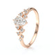 Léger, floral et aérien ! Ce superbe solitaire accompagné diamant est tout à fait singulier de part sa structure et la disposition de ses diamants. Cette pièce en Or 18 Carats est une véritable merveille, raffinée et élégante avec son diamant central en forme ovale.