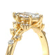 Léger, floral et aérien ! Ce superbe solitaire accompagné diamant est tout à fait singulier de part sa structure et la disposition de ses diamants. Cette pièce en Or 18 Carats est une véritable merveille, raffinée et élégante avec son diamant central en forme marquise.