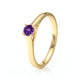 Solitaire en or 18 carats au chaton croisé et corps légèrement bombé, pensé pour révéler l'améthyste naturelle. Fabrication française, garantie à vie, livraison et mise à taille offertes.